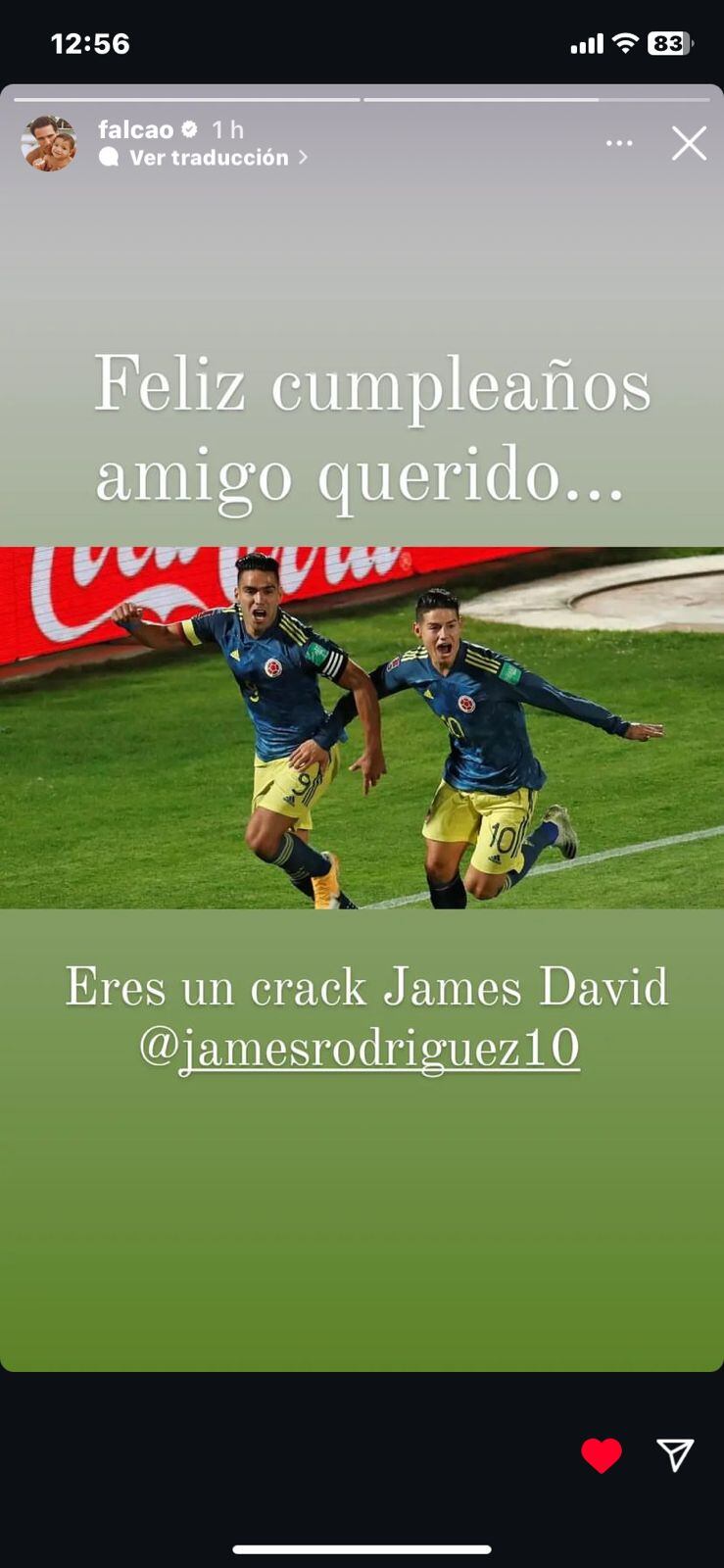 Radamel Falcao, goleador histórico de la Selección Colombia: “Feliz cumpleaños amigo querido, Eres un crack, James David”, publicó.