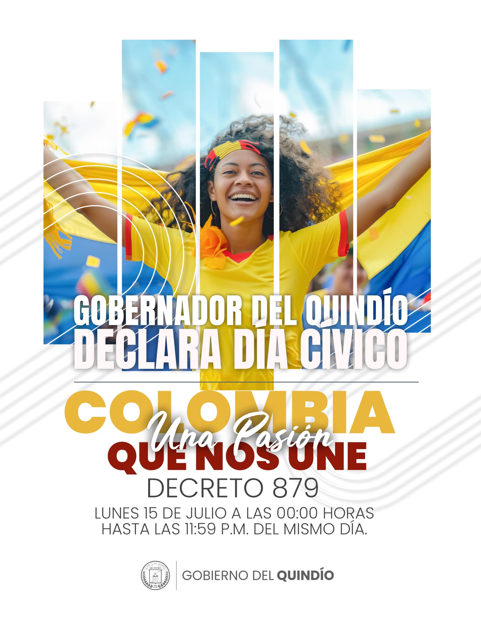 El Gobernador del Quindío, Juan Miguel Galvis Bedoya estableció a través del decreto 879, día cívico este lunes 15 de julio de 2024.