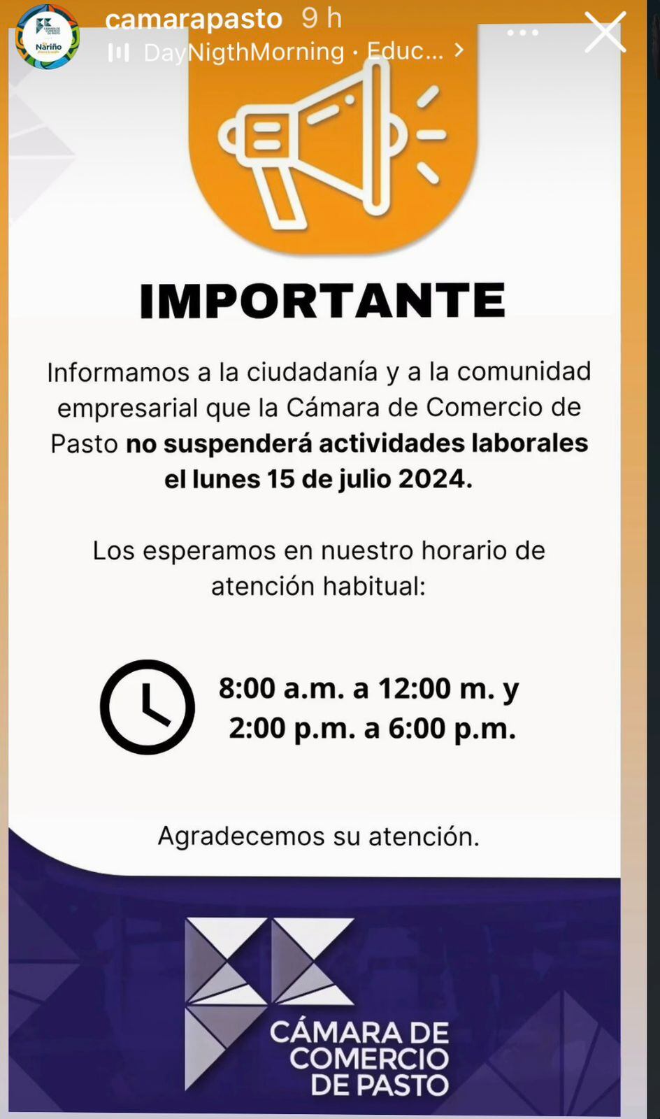 Entidades privadas como la Cámara de Comercio de Pasto y Fenalco, no se acogieron a la medida y en consecuencia prestarán sus servicios de manera normal.