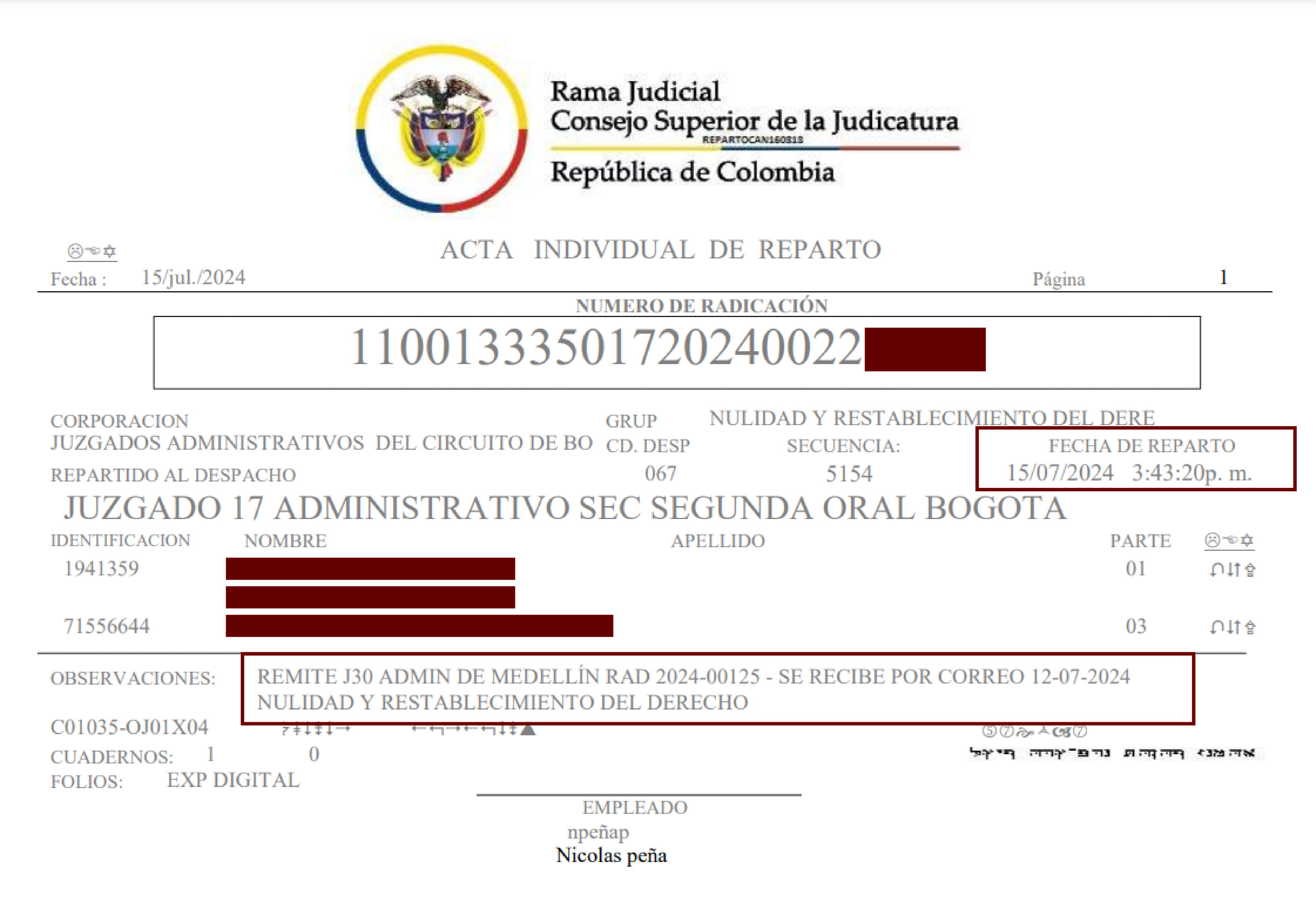 Ahora, con una demanda el exdirectivo busca que la justicia le ordene a Medicina Legal, que le devuelva los más de $32 millones. Esa demanda fue radicada a mediados de mayo pasado ante un juzgado de Medellín, pero por competencia el caso pasó a un juez de Bogotá y el pasado 15 de julio le fue asignado al juzgado 17 Administrativo.