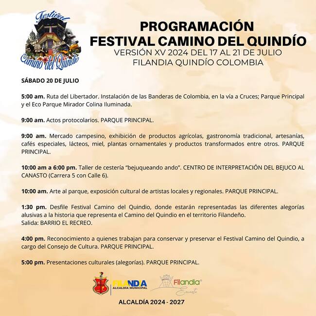 Programación Festival Camino del Quindío 2024, sábado 20 de julio: Foto Cortesía alcaldía de Filandia