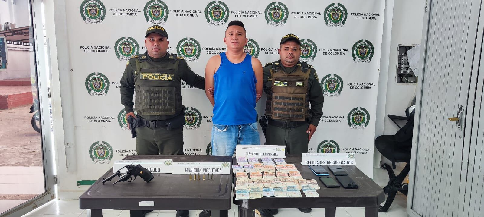 En el barrio Rancho Grande, se capturó a alias ‘Kevin o Matías’, encargado de recaudar dinero de la venta de estupefacientes. Este individuo fue detenido en 2018 durante la operación “Neptuno II”. Se le incautaron una pistola traumática y cartuchos. Presenta 15 anotaciones por delitos como concierto para delinquir agravado, extorsión, amenazas y violencia intrafamiliar.