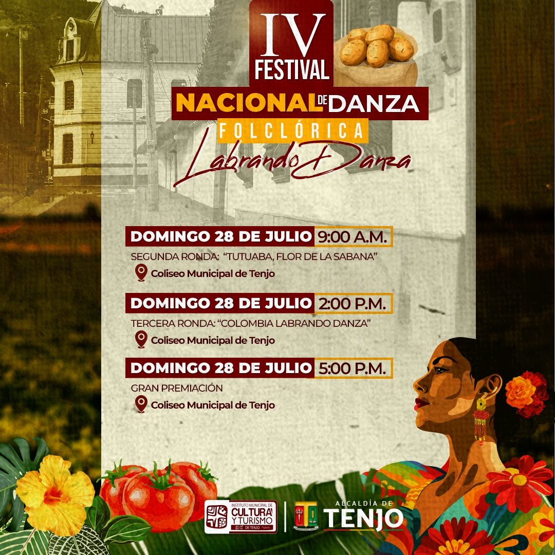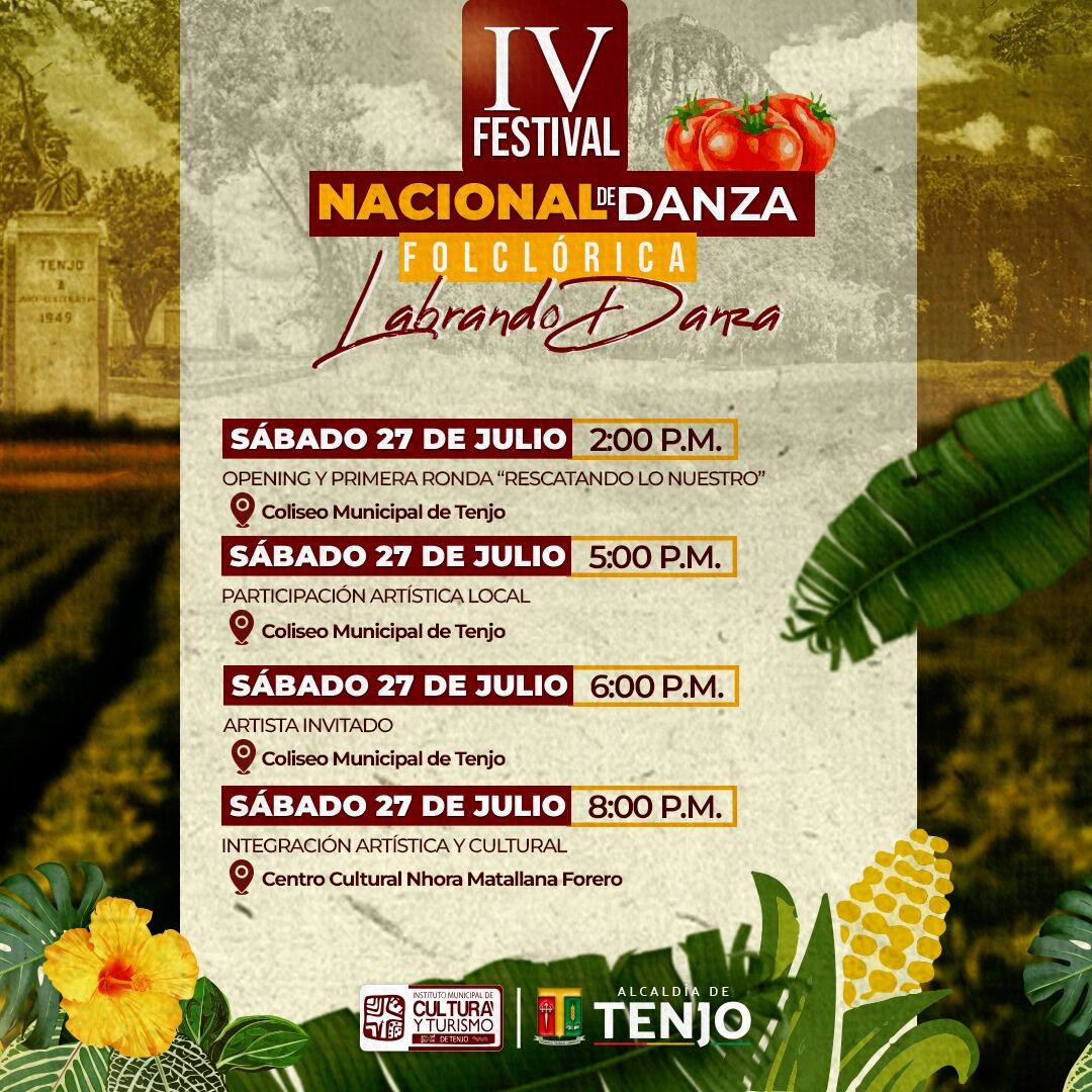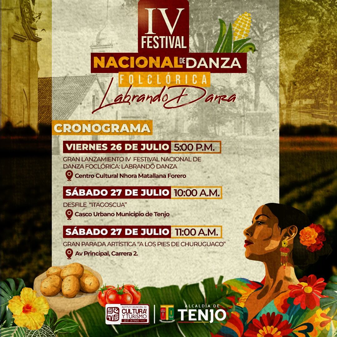 El Festival Nacional de Danza Folclórica “Labrando Danza” en su cuarta edición organizado por el Instituto Municipal de Cultura y Turismo de Tenjo llega el próximo fin de semana al municipio de Tenjo en el que cientos de ciudadanos tendrán la oportunidad de ver diferentes muestras artísticas de diferentes regiones de Colombia.