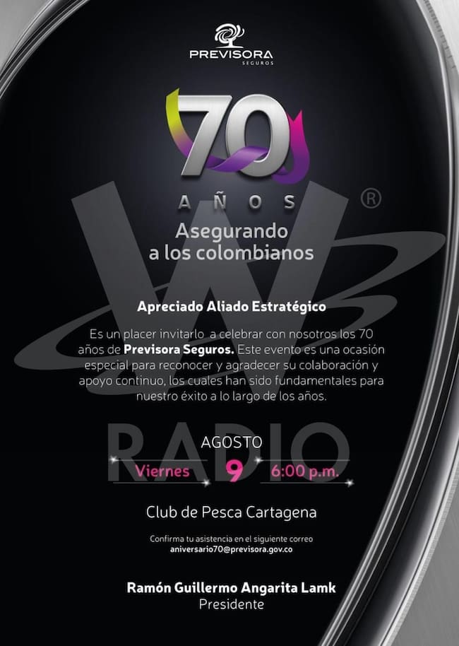 Cumplirá 70 años y, para celebrarlo, esa entidad dirigida por Ramón Guillermo Angarita hará dos eventos que le cuestan cerca de 300 millones de pesos, en momentos donde el mismo Presidente ha pedido austeridad. El primero es en Bogotá, el 6 de agosto, y supuestamente es para los funcionarios, mientras que el otro evento será en Cartagena el viernes 9 de agosto para los aliados.