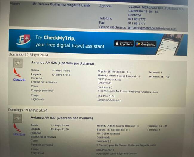 Además de viajar en Mazda Cx60, el presidente Angarita también viaja en avión en primera clase, pese a que el mismo Gobierno ha dicho que debe hacerse en clase turista. Aunque él lo negó, tenemos el documento que demuestra que sí viajó a España en Business Class e incluso intentó legalizar el costo adicional al tener esa silla.