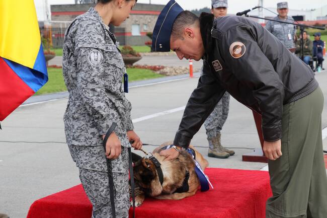 “Lara”: la perrita antiexplosivos que se despide con honores de la Fuerza Aérea Colombiana