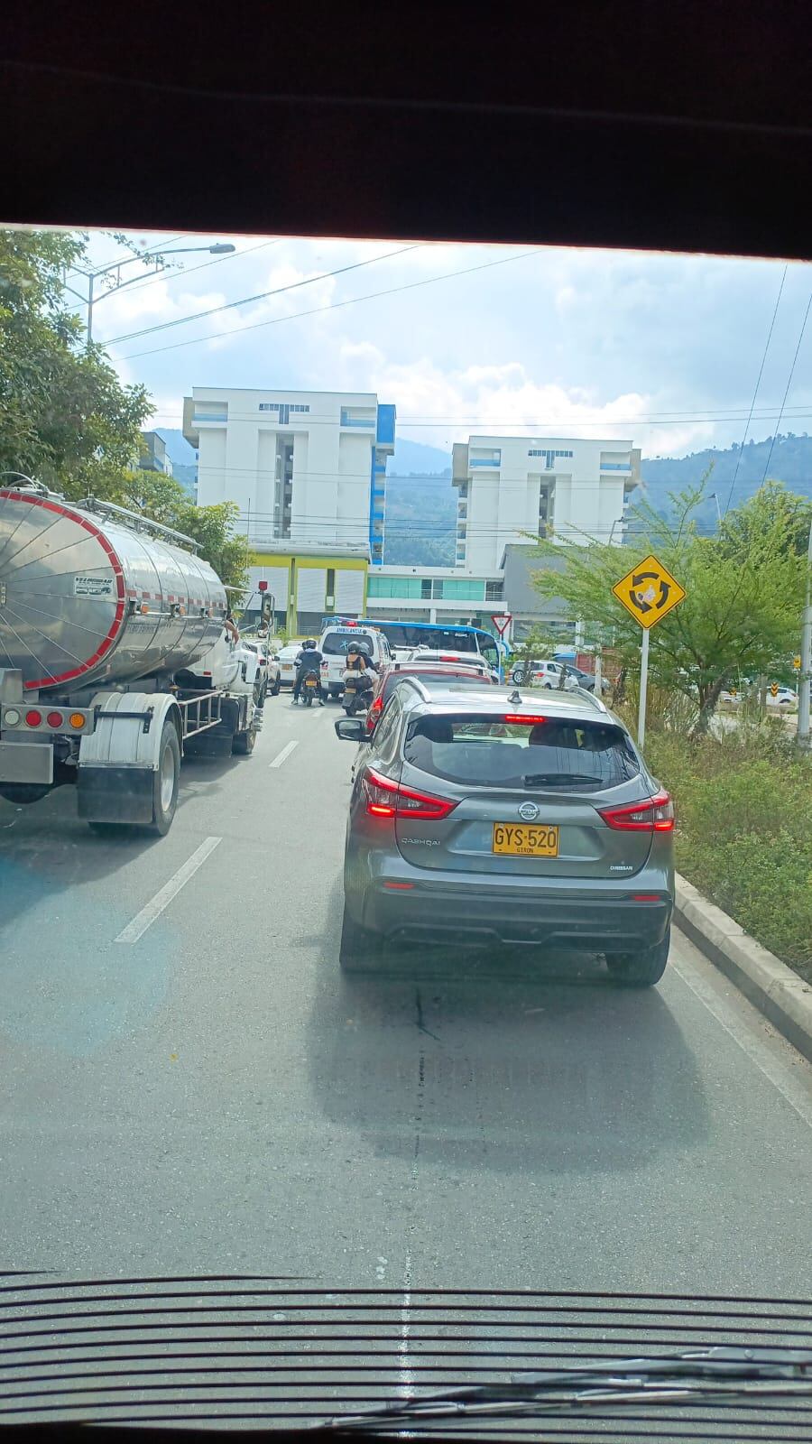 Hay congestión vial en este tan importante arteria vial del área metropolitana de Bucaramanga. “En este momento está un caos la salida por el centro comercial La Cuesta, por cuenta del accidente”, indicó un taxista que transitaba en el sector.