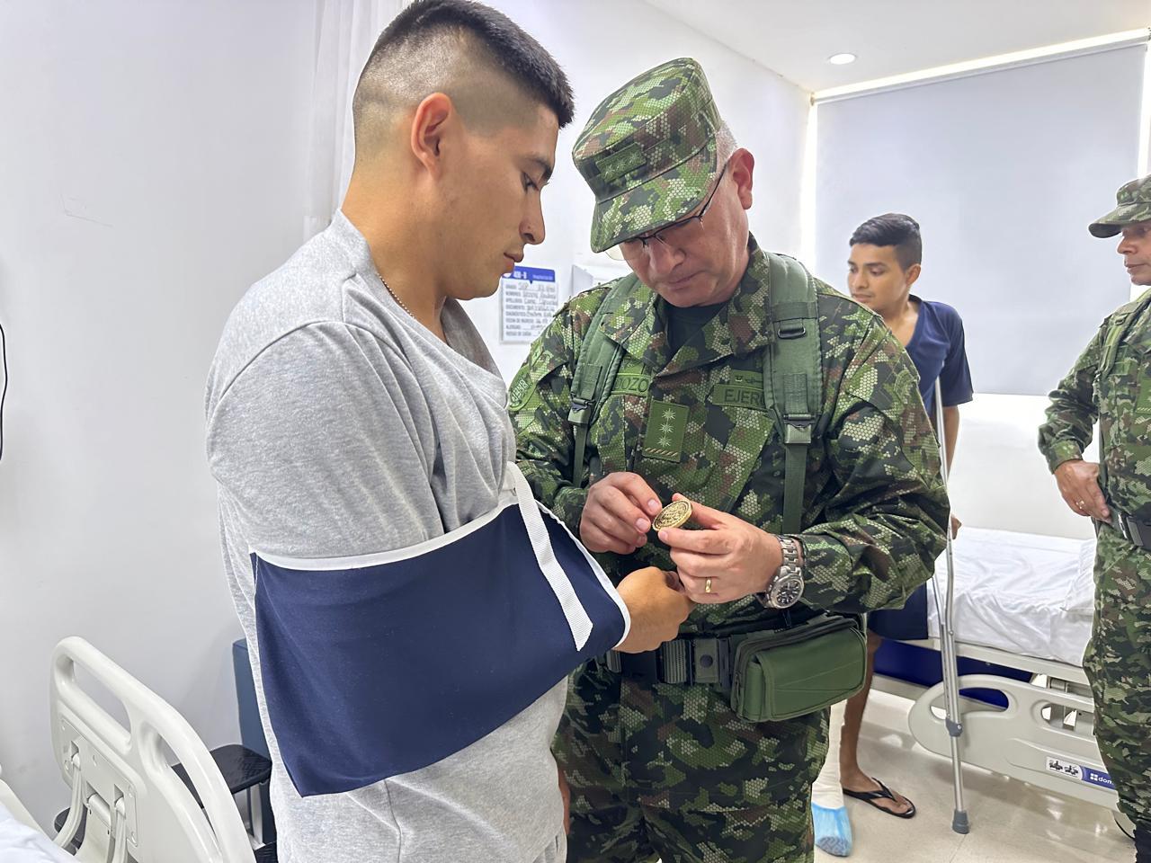 “Tuve la oportunidad de visitar a nuestros soldados que recientemente resultaron heridos en un combate que se tuvo en área rural del municipio de Argelia. Nuestros cinco soldados ya se encuentran muy bien, ya tenemos tres aquí en las instalaciones de la Tercera Brigada y todavía permanecen dos en la Clínica Valle de Lili, pero he hablado con ellos se encuentra bien”, aseguró.