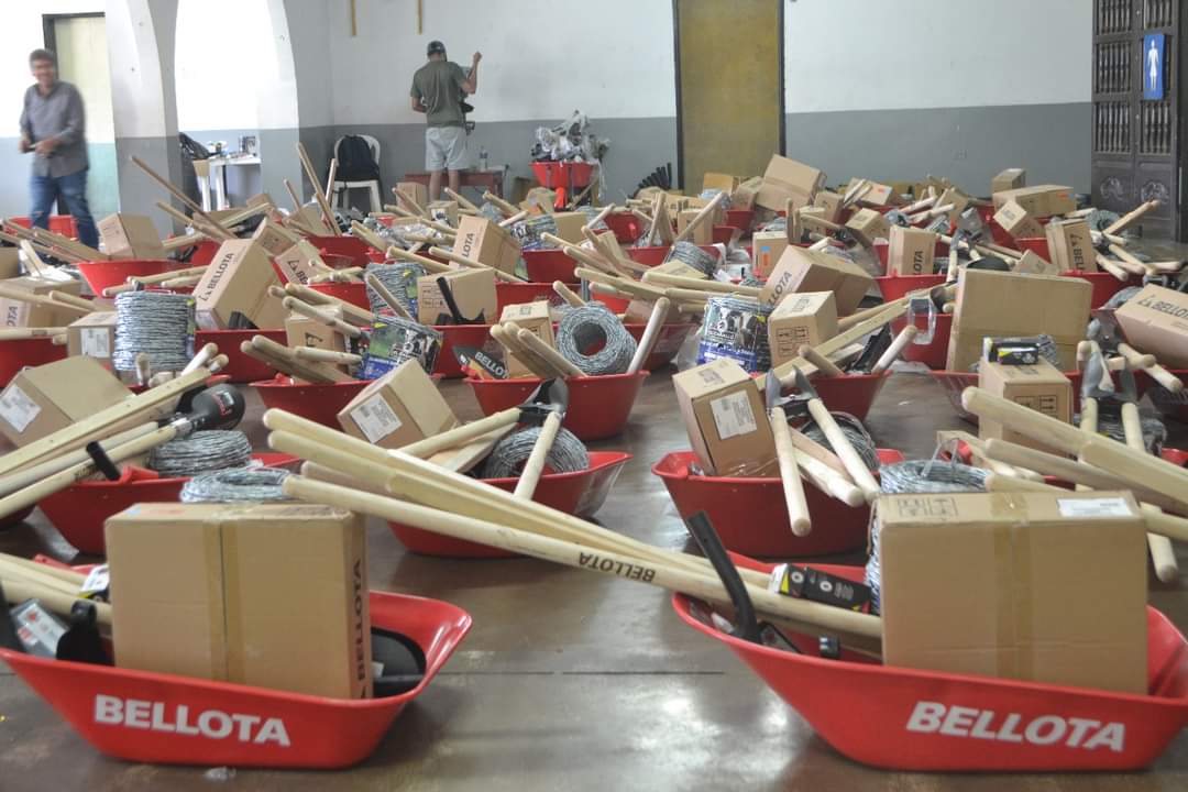 Los kits de herramientas estaban integrados por azadones, palas de punta, paladragas, machetes, carretillas, hachas, zapapicos, rollos de alambre de púas, cajas de grapas y puntillas / Foto: Suministrada.