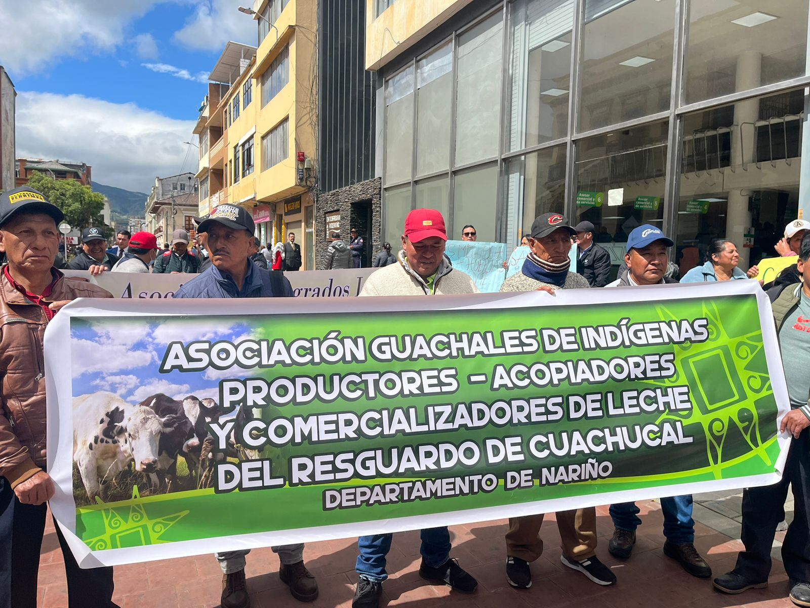 Hombres y mujeres dedicados a la producción de leche en varios municipios del departamento de Nariño se concentraron en Pasto en un plantón frente al palacio de la Gobernación de Nariño para hacer visible la difícil situación que enfrentan por la caída en el precio de la leche.