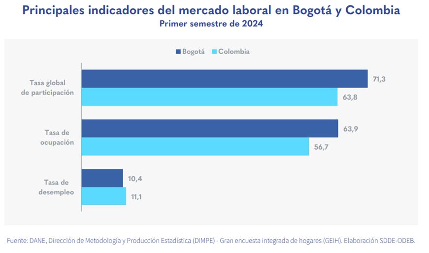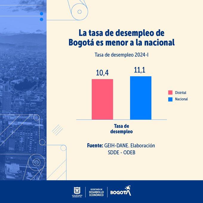 Disminución del 1.1% en la tasa de desempleo en Bogotá: primer semestre 2024