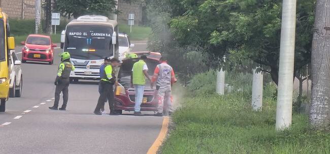 El carro de un hombre de la tercera edad se estaba incendiando en plena carretera, a escasos 300 metros del puesto de control. Don Fernando, un hombre de 65 años, había llevado su vehículo a un taller en Turbaco para arreglar un problema eléctrico. Sin saberlo, el mecánico había dejado un trapo en el motor, que al hacer contacto con una chispa, provocó un incendio.
