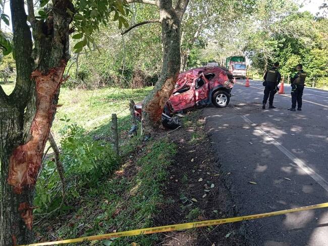 Por posible microsueño dos personas murieron al chocar contra un árbol en Santander