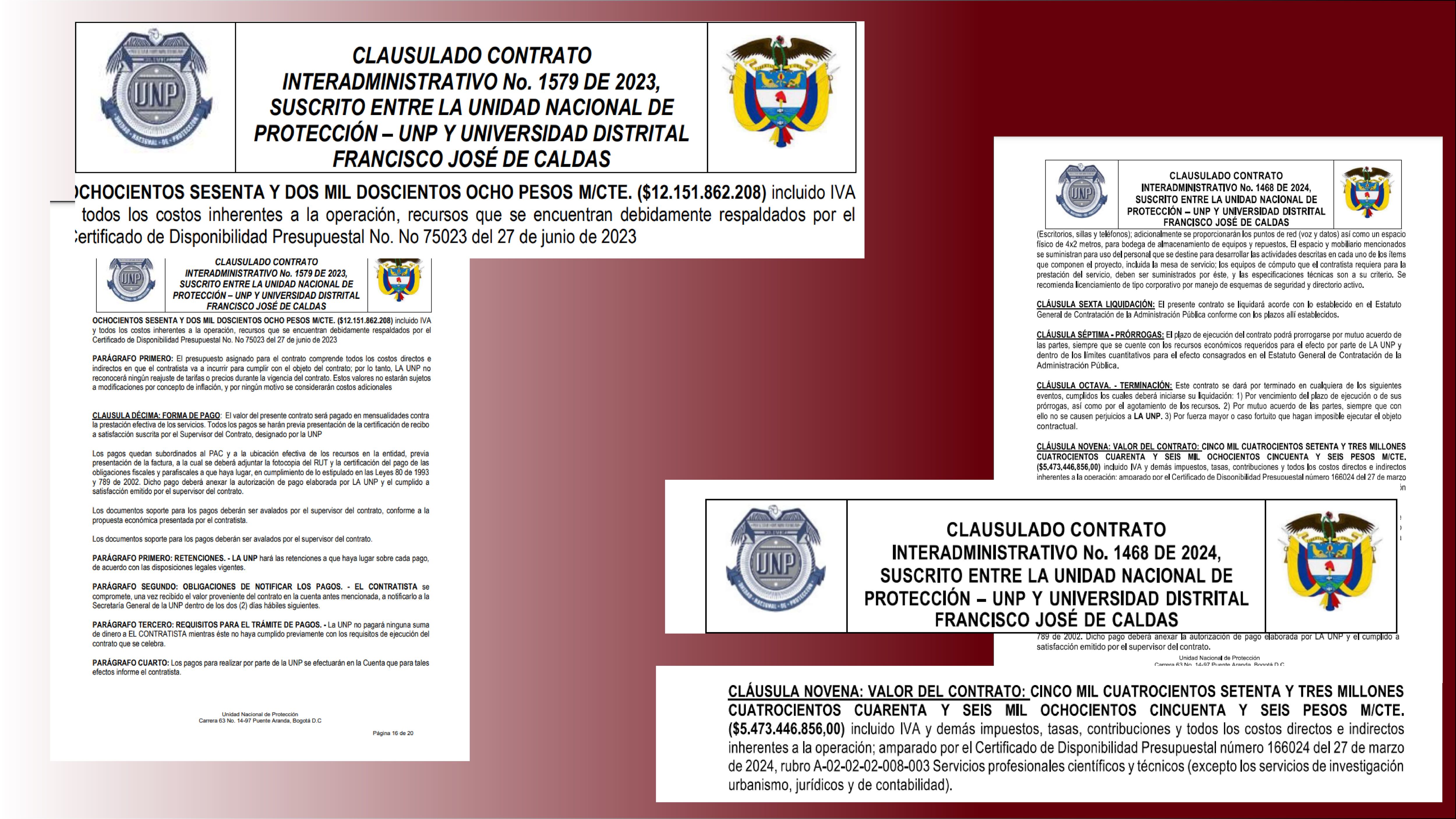 Entre las denuncias que llegaron al Consejo Superior de la Universidad Distrital, como a los entes de control, llama la atención que hay dos convenios interadministrativos la UNP que tienen idéntico objeto y lo más grave, según la denuncia, es que durante 20 días estuvieron ambos contratos activos, lo que, presuntamente, configuraría una celebración indebida de contratos. (ver convenios)