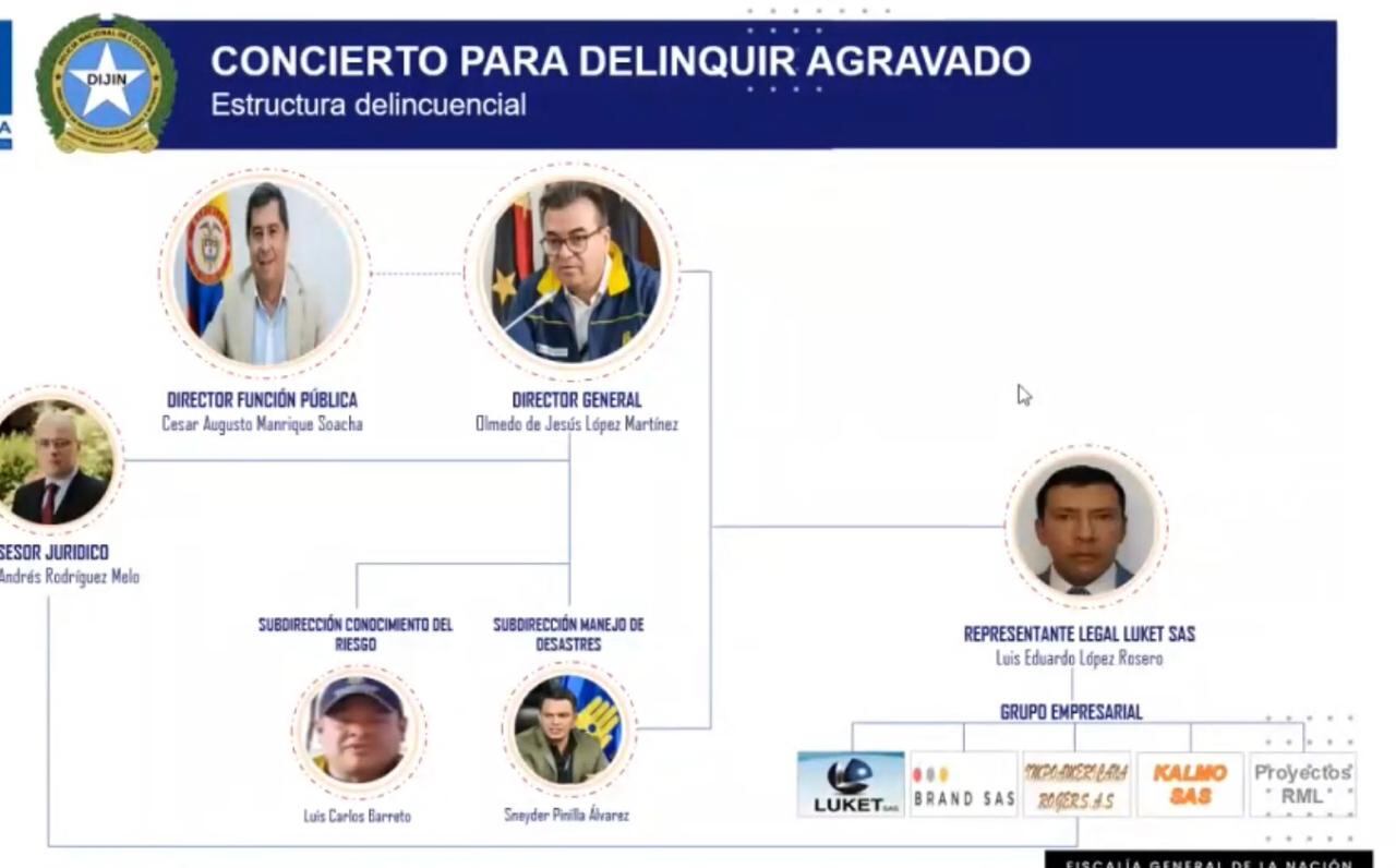 Un pronunciamiento que se conoce luego de la audiencia de solicitud de medida de aseguramiento, en la que la Fiscalía General reveló el organigrama de la escrutara criminal que desfalcó y se provechó de la contratación de la Unidad Nacional de Gestión del Riesgo y que encabeza, precisamente, Cesar Manrique junto a Olmedo López.