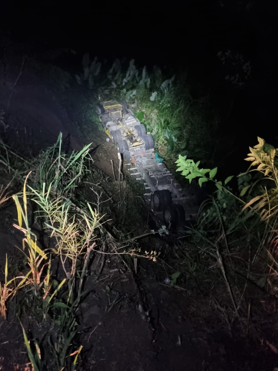 No hubo fallecidos, pero sí varios heridos. El tractocamión cayó al abismo y a la hora autoridades de Tránsito se encargan de sacar el vehículo de este lugar.
