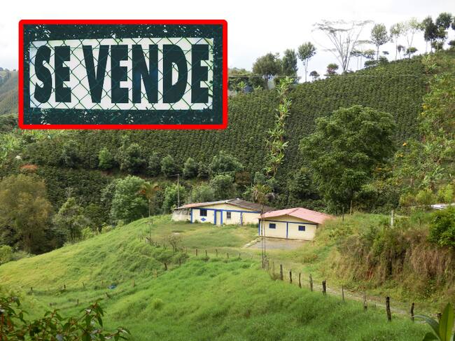 Paisaje colombiano con dos casas; y señalización de 'Se Vende'. (Foto: Getty Images)