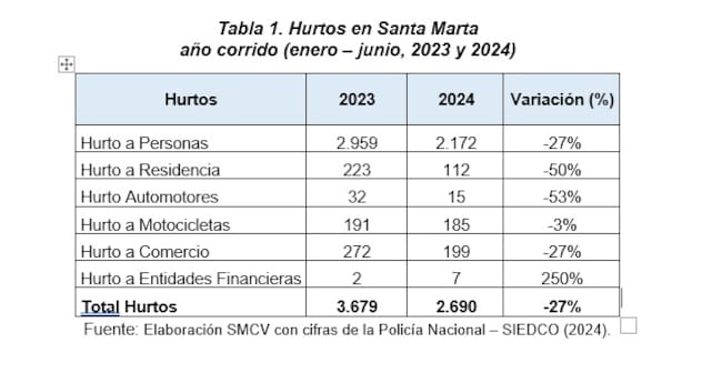 Según Santa Marta Cómo Vamos, la tasa de homicidios de 17,3, ubica a Santa Marta como la quinta ciudad entre las 23 principales y la segunda de la región Caribe con la mayor número de crímenes en lo corrido del 2024.
