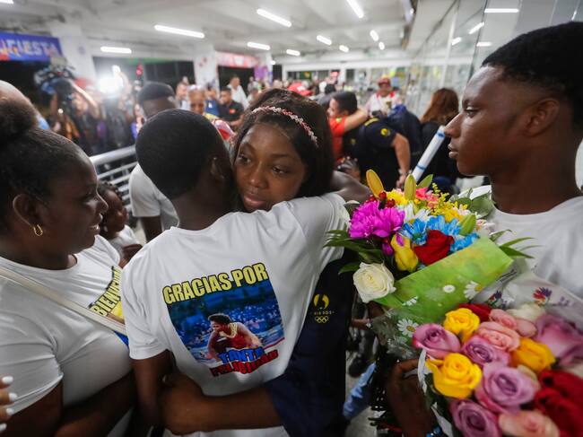 La antioqueña también regresó al país luego de colgarse la medalla de plata en levantamiento de pesas, 71 kilogramos. En el aeropuerto Internacional José María Córdova, al igual que López y Rentería, un enorme grupo de personas la recibió en medio de cánticos y arengas, reconociendo el logro obtenido en París 2024.