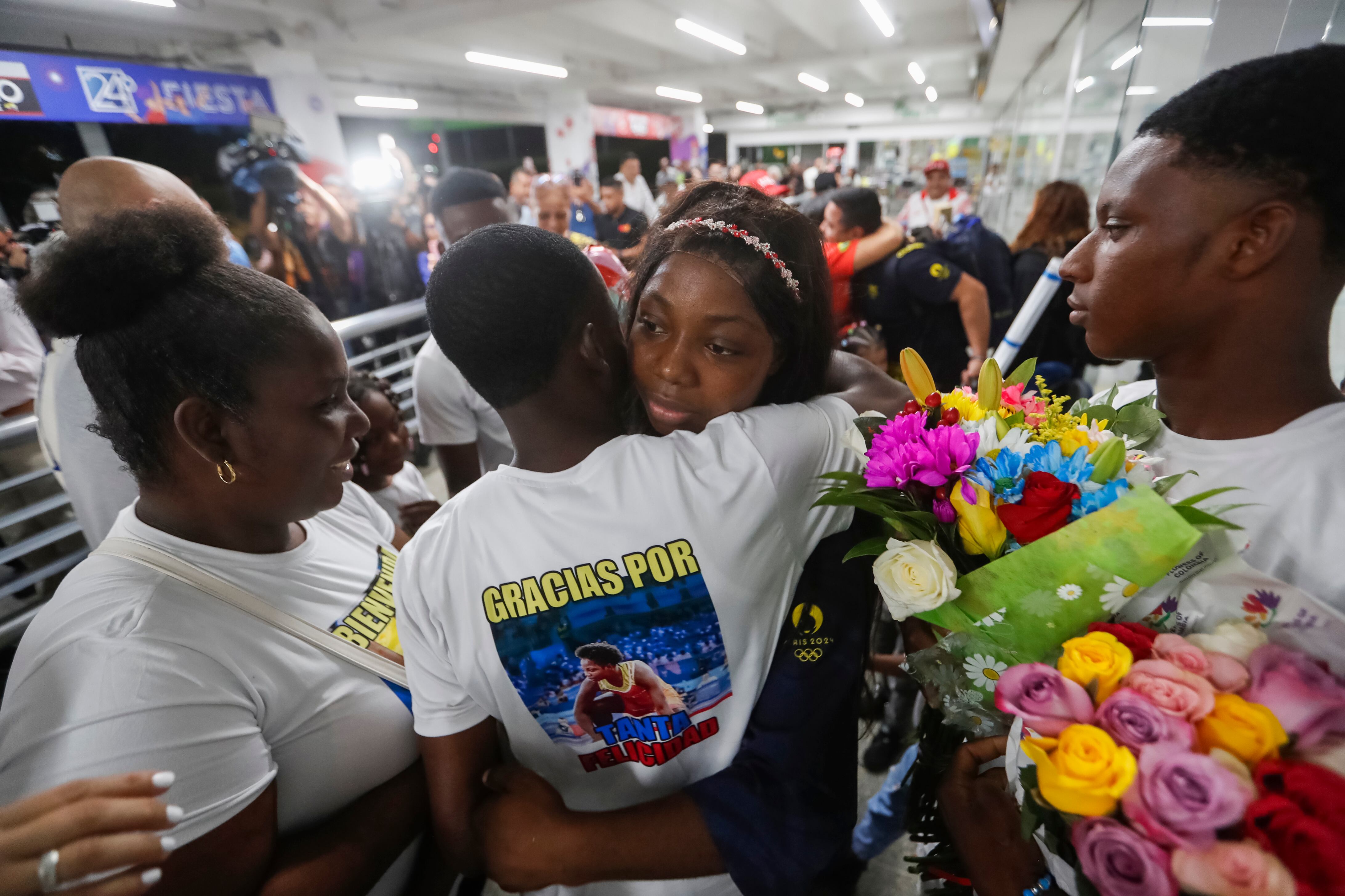 Los deportistas fueron trasladados en largas caravanas, y la fiesta sigue en marcha celebrando las medallas alcanzadas en Francia. “Estoy casi seguro que voy a tener esa casa para mi mamá, para mi familia. Vengo con la maleta llena de sueños cumplidos. Ahora solo quiero llegar a comer un sancocho, porque en mi casa se hacen los mejores sancochos del mundo”, concluyó López.
