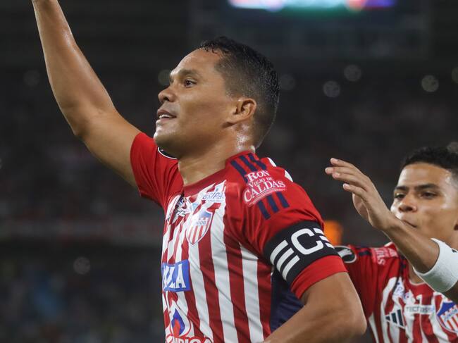 AMDEP384. BARRANQUILLA (COLOMBIA), 23/04/2024.- Carlos Bacca de Junior celebra un gol este martes, en un partido de la fase de grupos de la Copa Libertadores entre Junior y LDU Quito en el estadio Metropolitano en Barranquilla (Colombia). EFE/Agencia Kronos / Agencia Kronos (EFE)