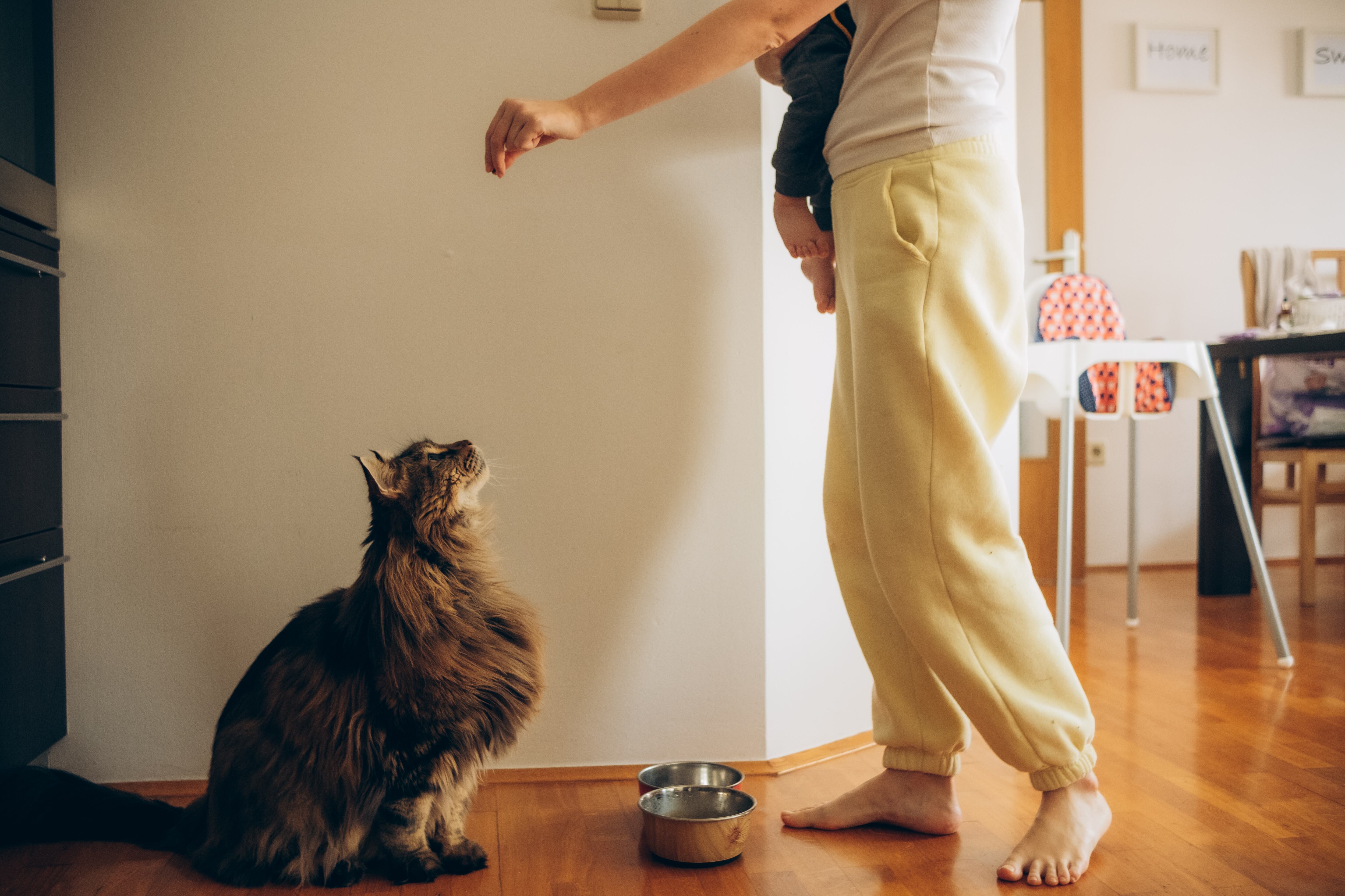 Mujer alzando un gato Manie coon (Foto vía Getty Images) / Jordi Janau