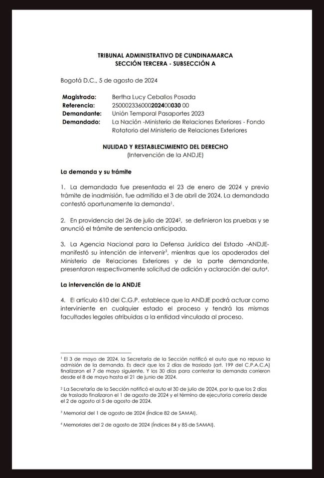 El Tribunal Administrativo de Cundinamarca suspendió por 30 días el proceso de la demanda que interpuso Thomas Greg & Sons contra la Cancillería por el caso pasaportes.