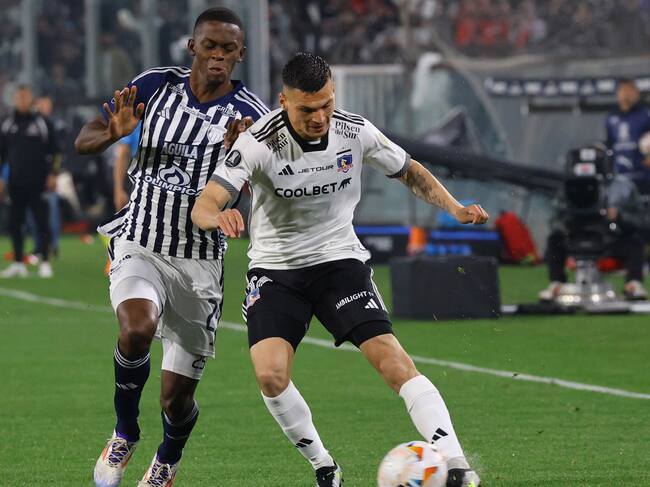 SANTIAGO, CHILE - AUGUST 13: Lucas Cepeda of Colo Colo and Andres Colorado of Junior battle for the ball during the Copa CONMEBOL Libertadores 2024 Round of 16 match between Colo-Colo and Junior at Estadio Monumental David Arellano on August 13, 2024 in Santiago, Chile. (Photo by Marcelo Hernandez/Getty Images) / Marcelo Hernandez