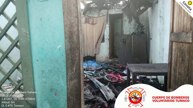 Incendio en barrio de Tumaco. Foto: Bomberos Tumaco