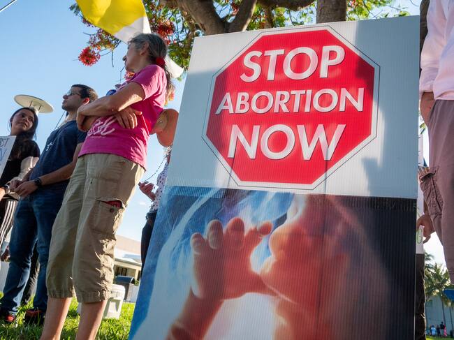 Miami (United States), 27/06/2022.- Fotografía de archivo fechada el 27 de junio de 2022 que muestra a un grupo de manifestantes anti-aborto durante una protesta en el campus de la Universidad Internacional de Florida, en Miami (EE.UU.). La entrada en vigor a partir de este miércoles en Florida de una nueva ley que prohíbe el aborto desde la sexta semana de embarazo termina de configurar la casi imposibilidad de esta práctica en el sureste de EE.UU., según ponen de relieve los detractores de la normativa. EFE/ Cristobal Herrera-ulashkevich ARCHIVO / CRISTOBAL HERRERA-ULASHKEVICH (EFE)
