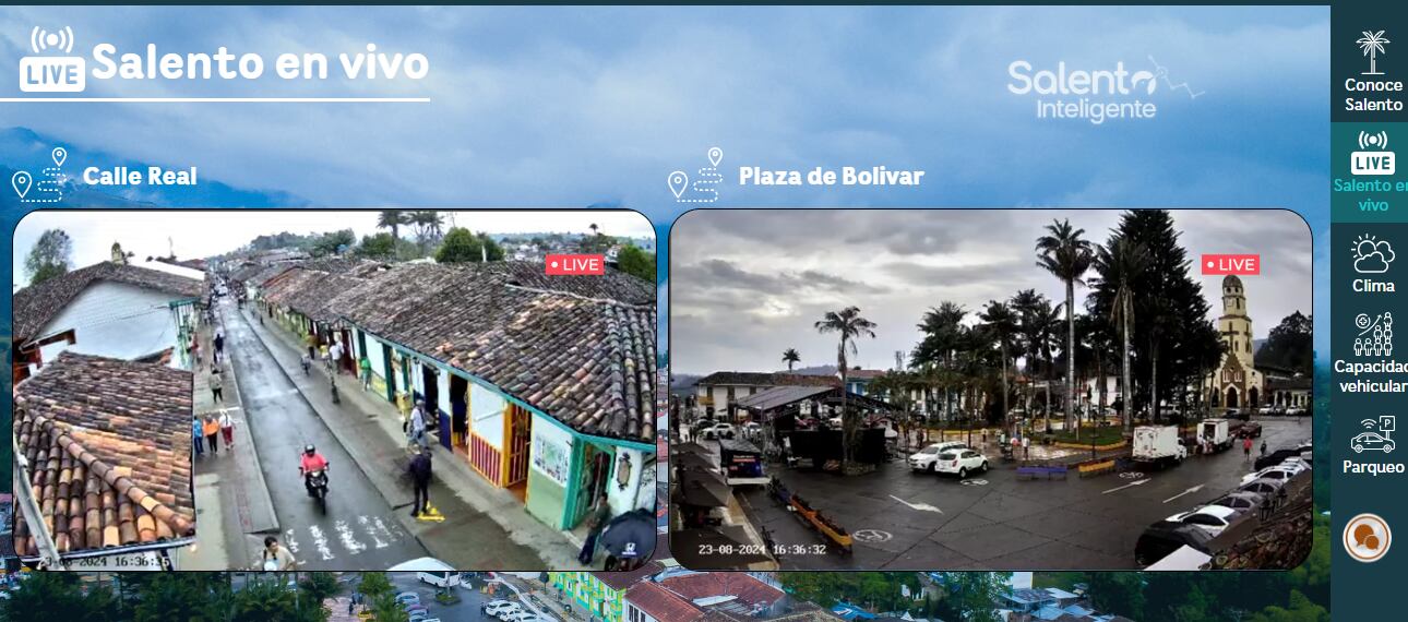Salento Inteligente ofrece a los turistas y a los quindianos información de cámaras en vivo, el estado del clima, conocer la capacidad vehicular de las calles del municipio, parqueadero inteligente y seguridad empresarial, todo en tiempo real a través del sitio web https://www.edeq.com.co/quindio-inteligente/salento.