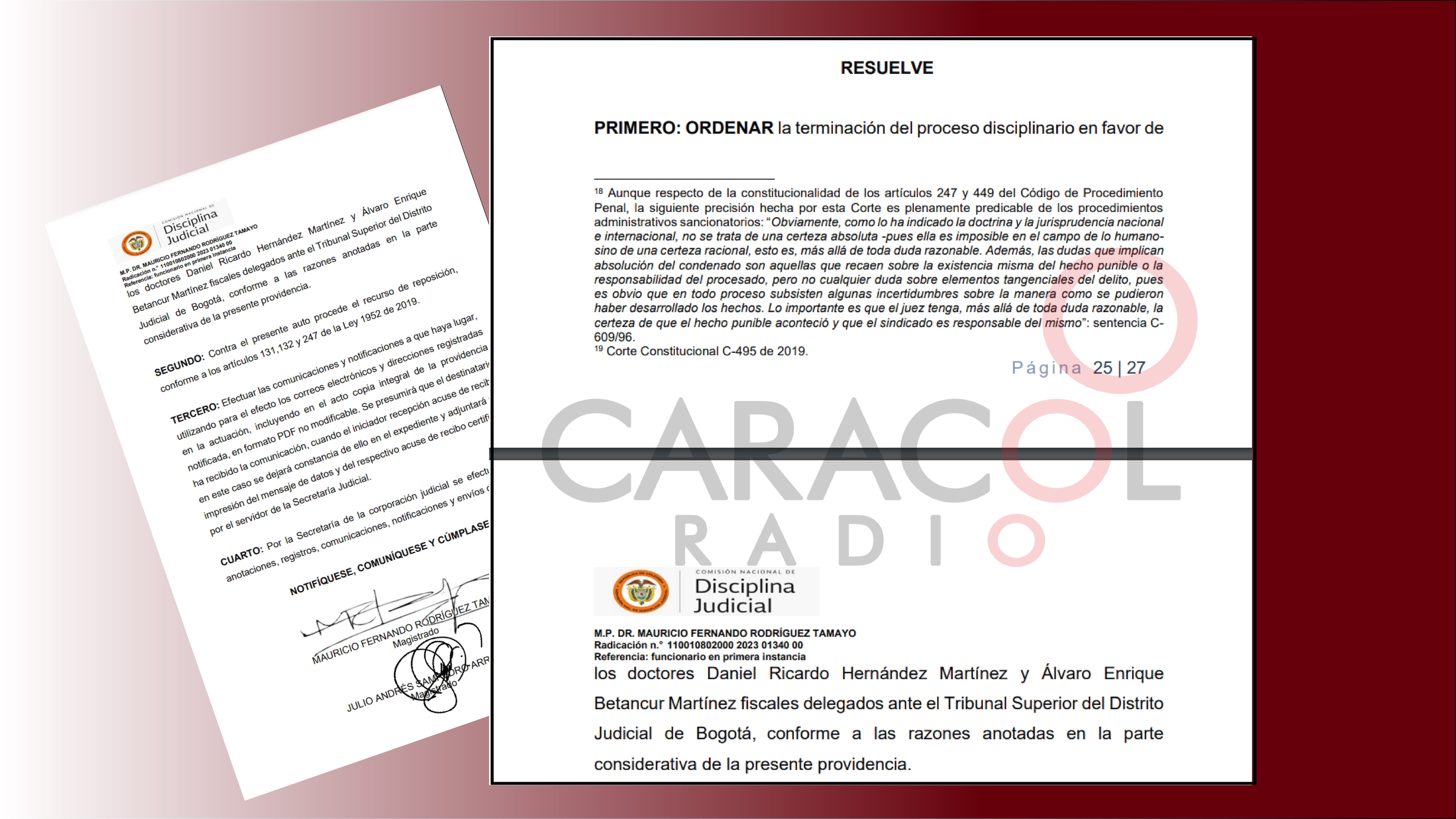 El fallo de la Comisión Nacional de Disciplina que cerró el proceso en favor del fiscal Daniel Hernández y del exfiscal Álvaro Betancourt porque las supuestas amenazas contra el exsenador Otto Bula para limitar su declaración por el caso Odebrecht no existieron.