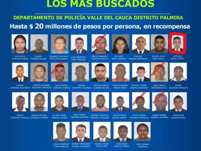 En las últimas horas, las autoridades capturaron y enviaron a la cárcel a Santiago Erazo Suárez, conocido como alias ‘Santi’, quien se encontraba en el cartel de los más buscados de Palmira, Valle, por delitos relacionados con el tráfico de drogas.