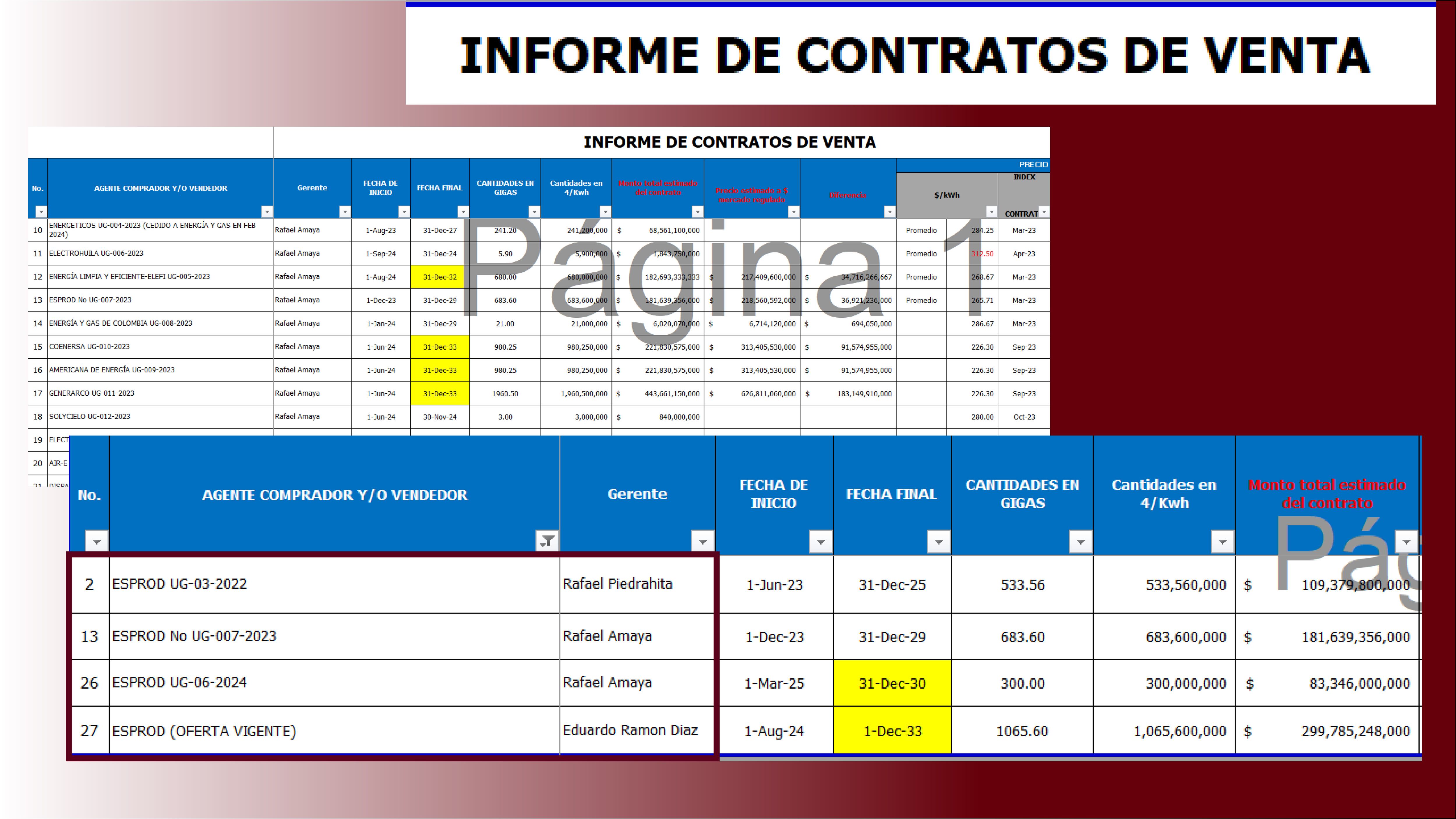 Este otro dato. Hay cuatro contratos a una empresa que se llama ESPROD, uno de los contratos tiene vigencia hasta diciembre de 2025; otro hasta diciembre de 2029; el tercero hasta diciembre de 2030; y un último hasta diciembre de 2033. Todos esos contratos suman más de $674 mil millones.