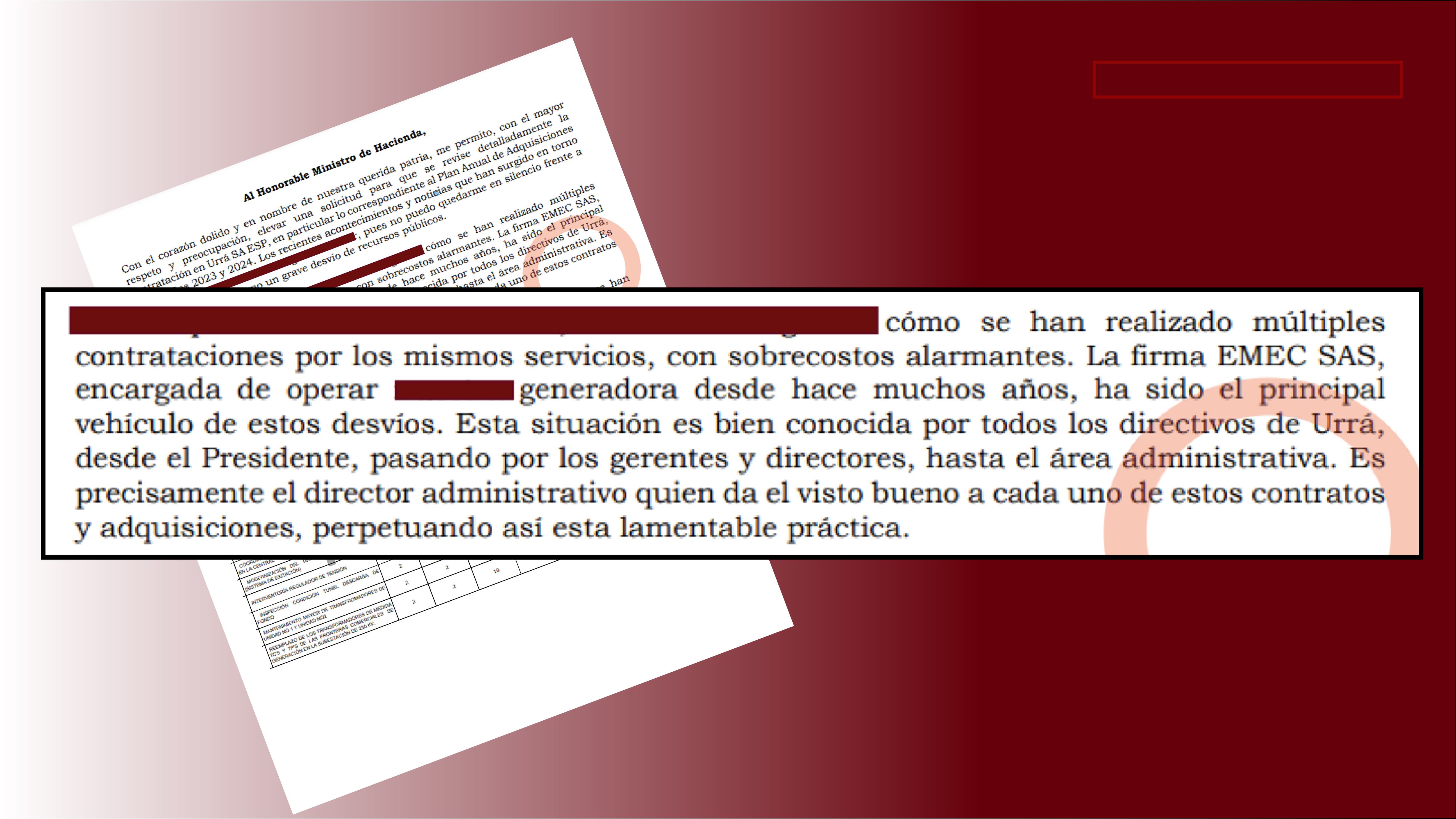 En esos documentos se advierte de situaciones “graves” de presunta corrupción que incluyen contrataciones repetidas por asuntos de servicios y presuntamente con la complicidad de altos directivos de la Hidroeléctrica de Urrá.