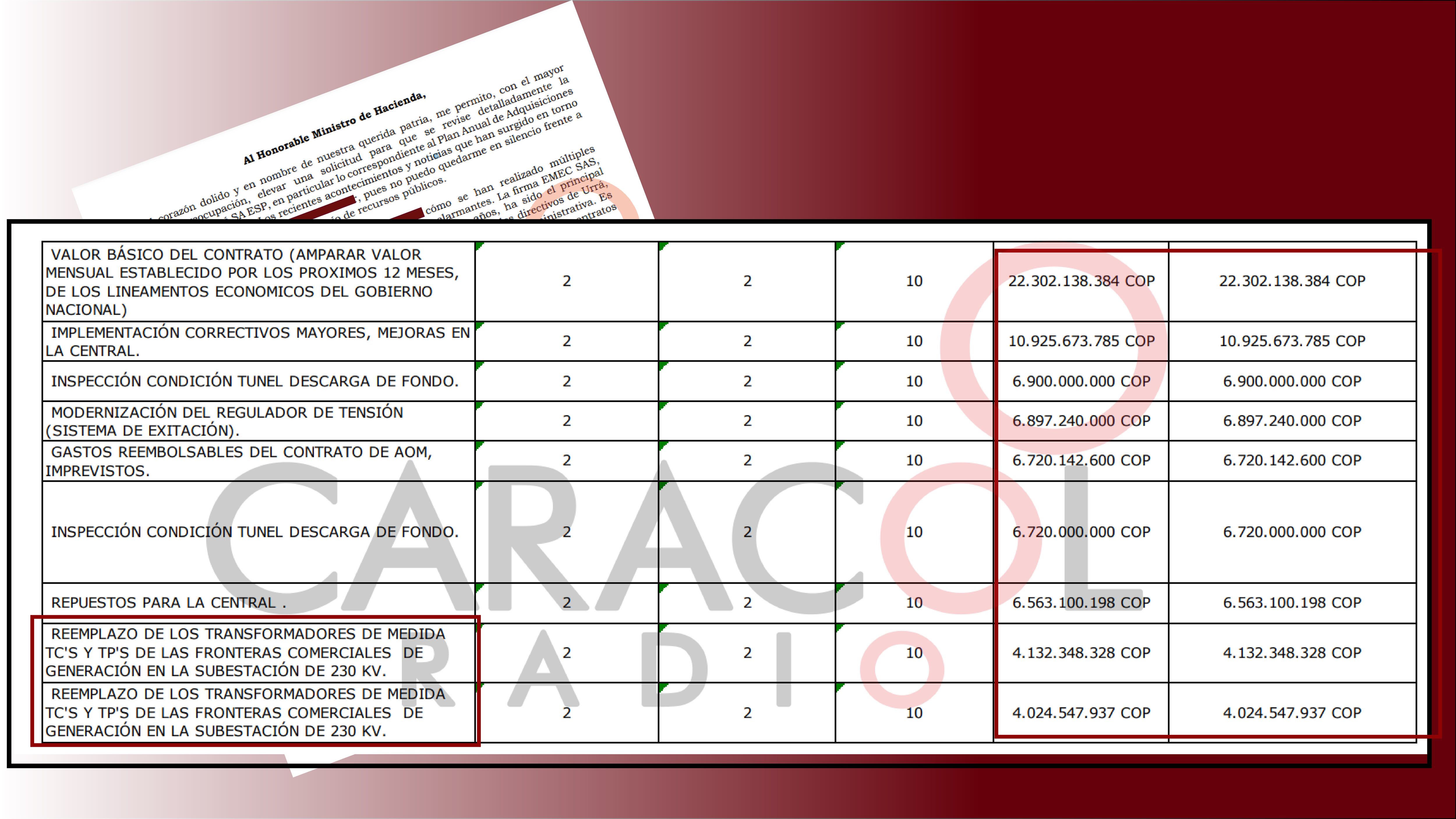 Al revisar los Planes Anuales de Adquisiciones de 2023 y 2024, hay contratos de órdenes de servicio con valores “exorbitantes” con objeto de contrato duplicado, además, se ha identificado pagos por servicios que, presuntamente son prestados por los mismos directivos de la Hidroeléctrica, pero que, de manera indirecta y a través de empresas que estarían a nombre de terceros estarían sacando jugosas tajadas.