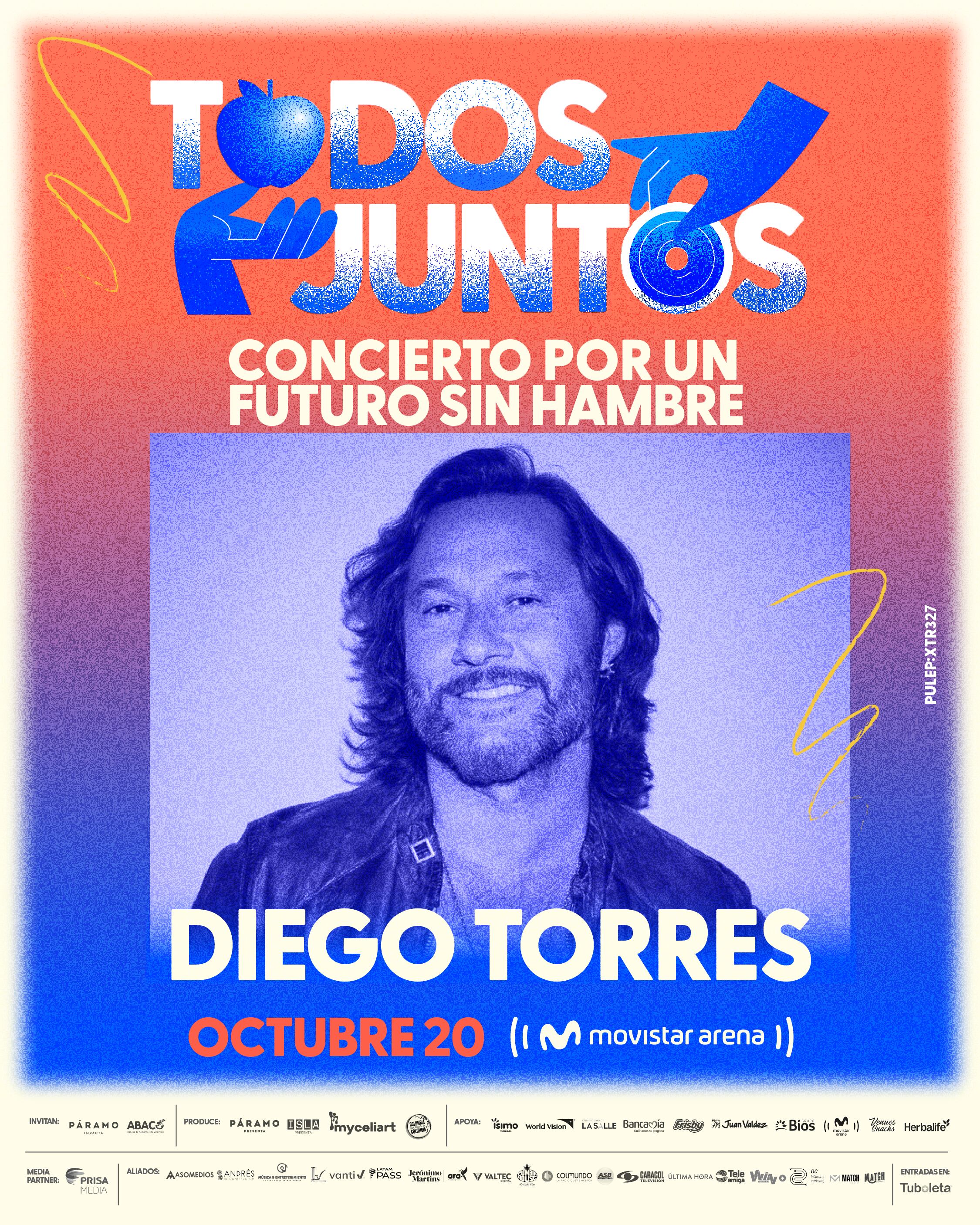 Para nosotros es un honor anunciarles que Diego Torres hace parte de esta causa. El argentino que además de llevar bajo el brazo una de las discografías más celebradas del pop-rock latino, ha pintado un mundo color esperanza con esta y otras iniciativas humanitarias alrededor de nuestro continente. Nunca una razón había sido más urgente y a la vez tan noble para encontrarnos con este nombre de leyenda.