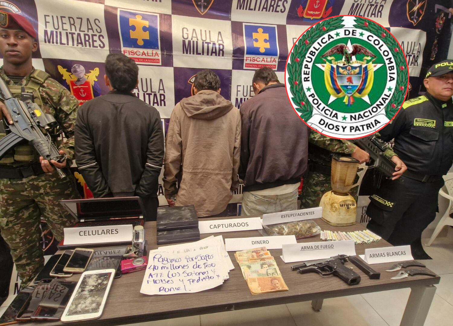 Los implicados se encuentran en proceso de judicialización por los delitos de porte ilegal de armas, tráfico de estupefacientes y amenazas. Un juez determinará su situación legal en las próximas horas.