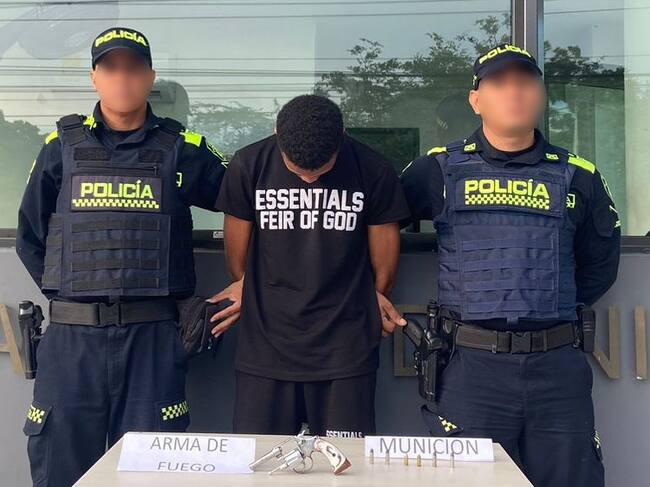 En el sector Las Américas del barrio Olaya Herrera, durante planes de registro y control, fue capturado ‘el Jorgito’, quien se encontraba en la esquina de una tienda de abarrotes. Al practicarle un “cacheo” le fue encontrada un arma de fuego tipo revólver calibre 32 con seis (6) cartuchos sin percutir.