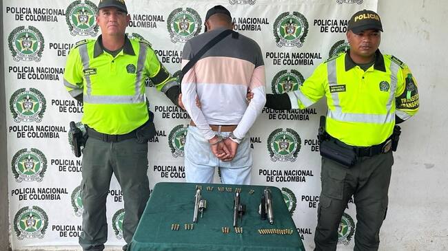 En medio de un operativo de registro y control por parte de las unidades de la seccional de Tránsito y Transporte, lograron capturar en flagrancia a Juan Manuel Castillo Orozco, de 31 años, oriundo de la ciudad de Bogotá que, en medio de un registro personal, le hallaron tres armas de fuego con sus respectivos cartuchos.