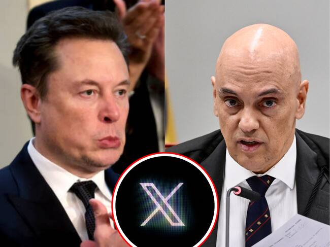El magistrado del Supremo Tribunal Federal de Brasil, Alexandre de Moraes (d), exigió a Elon Musk (i) a indicar “en 24 horas el nombre y calificación del nuevo representante legal de X en Brasil” o suspenderá la aplicación en el país. (Foto: Getty / Caracol Radio )