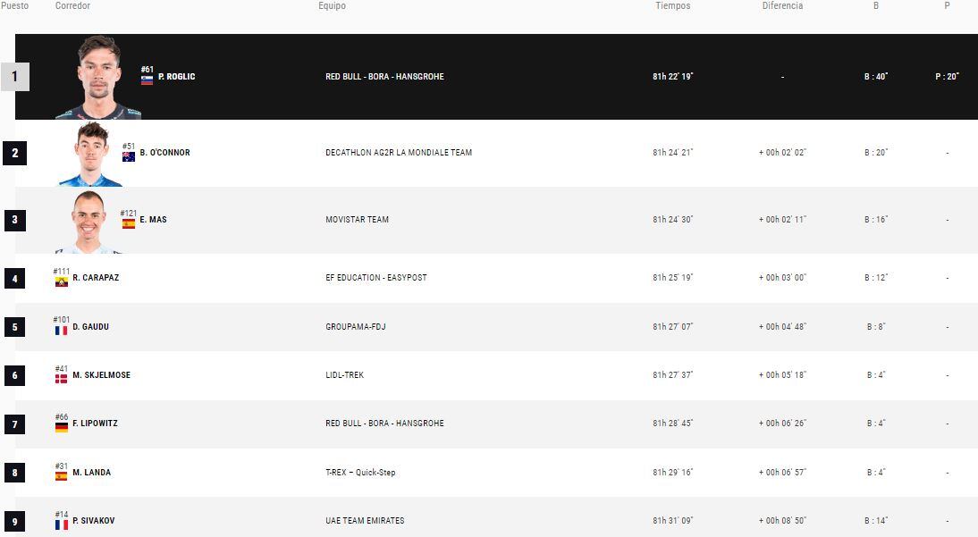 Clasificación general vuelta a España 2024/ LA VUELTA / David Santiago Muñoz Camargo