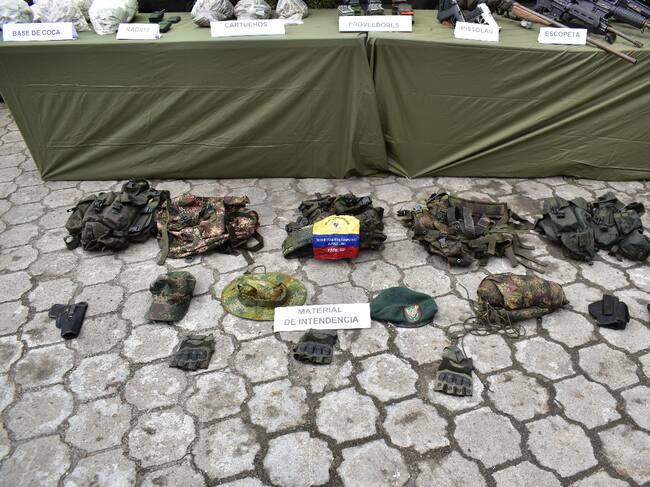 Durante la inspección además fueron ubicados chalecos multipropósito y un brazalete del “Bloque Occidental Comandante Alfonso Cano”.