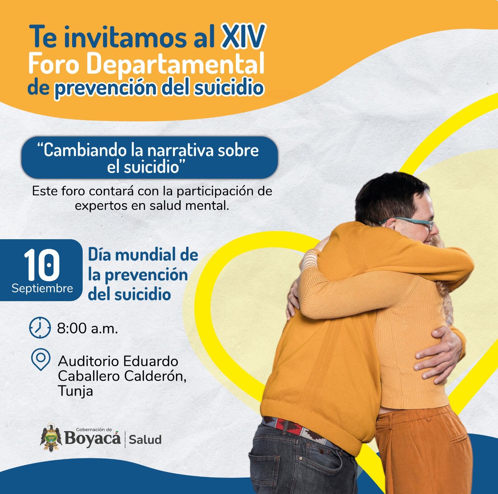 “Desde las 8:00 de la mañana vamos a desarrollar el XIV Foro Departamental de Prevención del Suicidio ‘Cambiando la narrativa sobre el suicidio’, que se realizará en el auditorio Eduardo Caballero Calderón en Tunja que contará con la participación de expertos en salud mental. Por otro lado, a las 6:00 de la tarde se llevará a cabo en la Plaza de Bolívar de Tunja una velatón, recordando a las personas que han muerto y también a los sobrevivientes que han pasado por una situación de suicidio. Invitamos a la comunidad a vestir una prenda amarilla o a llevar una cinta de este color para conmemorar este día”, afirmó Barrera.
