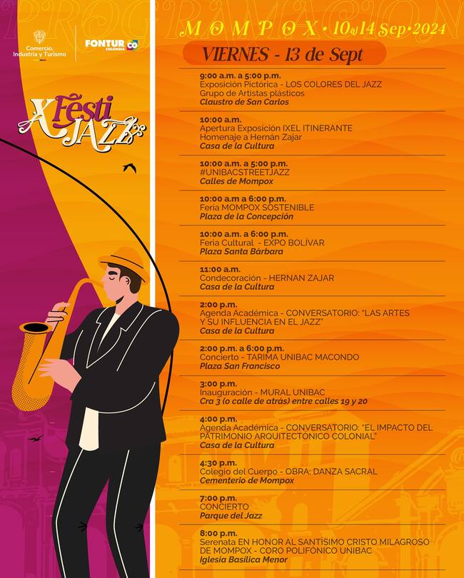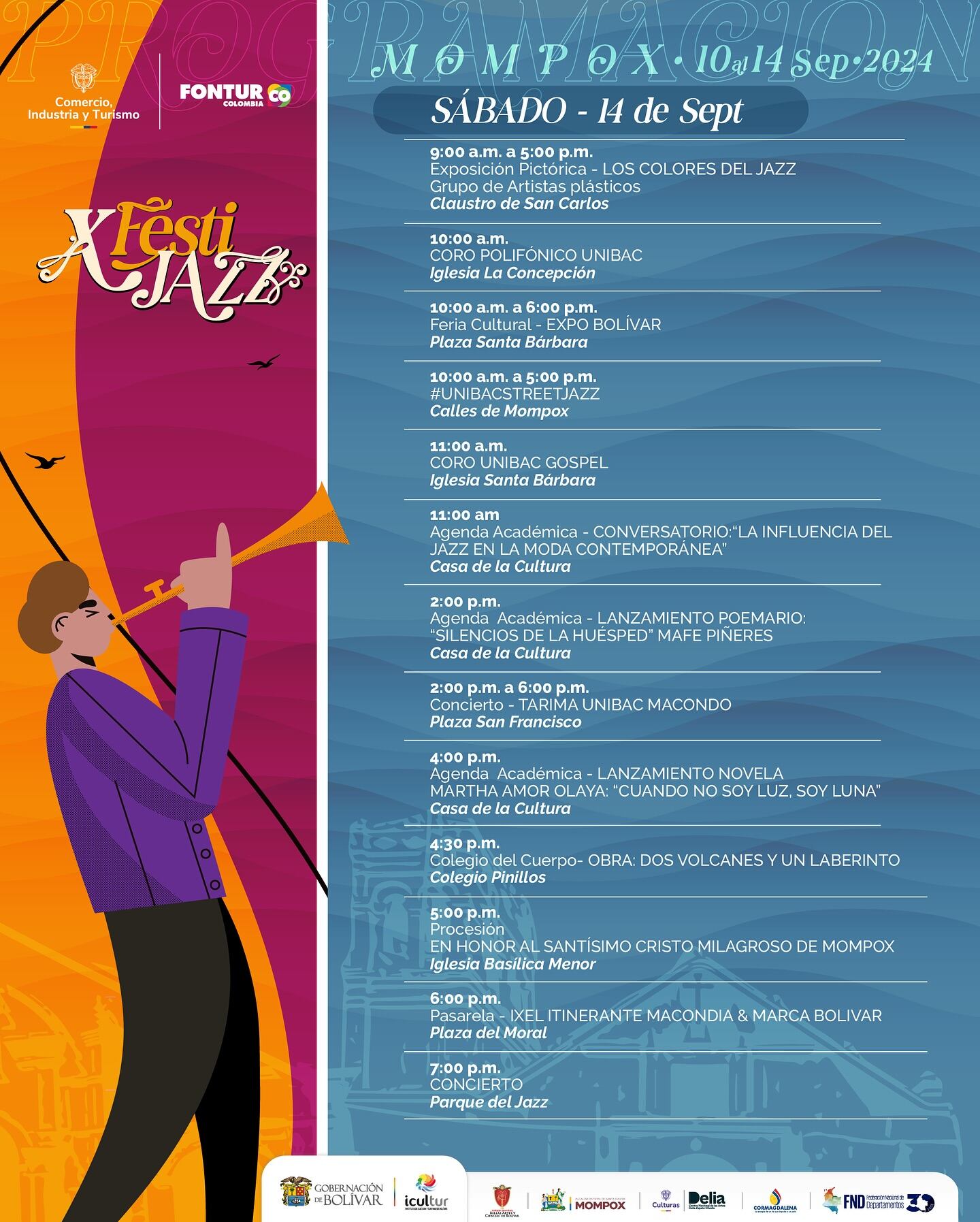 Desde este martes 10 hasta el sábado 14 de septiembre de 2024, se llevará a cabo la X edición del Festival de Jazz de Mompox, en la que participarán más 150 intérpretes del jazz, tanto nacionales como internacionales.