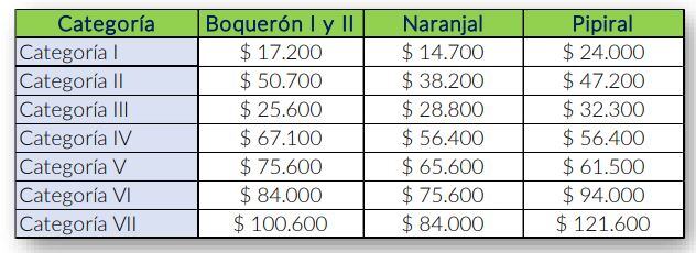 - Categoría I: $55.900 pesos colombianos.