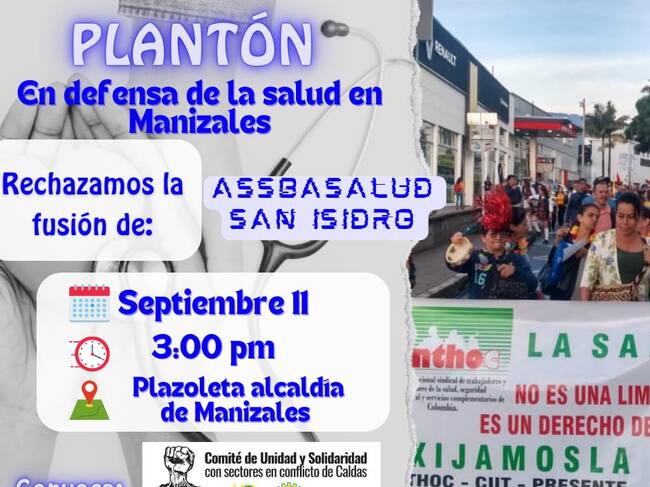 El plantón de mañana se realizará a las tres de la tarde en la Plazoleta de Alcaldía de Manizales, participarán en esta manifestación los sindicatos de Assbasalud y San Isidro