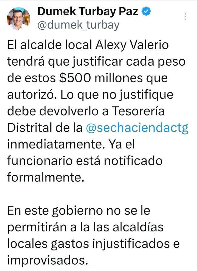 Recordemos que el alcalde Dumek Turbay Paz solicitó un informe al alcalde menor de la Localidad 2, Alexis Valerio, con relación a la contratación para el desarrollo los Juegos de la Localidad de la Virgen y Turística, inaugurados el 8 de septiembre.