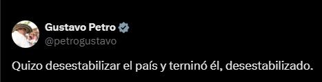 Lo expuesto por el mandatario, es bajo el contexto que muchos sectores acusaron a Henry Cárdenas, como el principal promotor del paro camionero y de procurar sostenerlo, pero que a la par, el ahora expresidente de Fedetranscarga, negaba dicha acusación en medio de su participación en la mesa de concertación entre transportadores y el Gobierno Nacional.