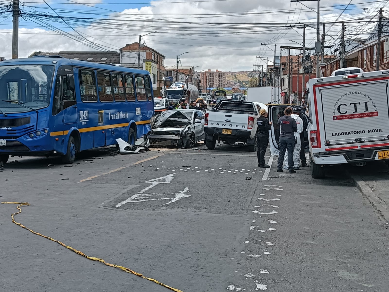 Testigos del accidente indicaron que, además de la camioneta y la motocicleta, otro vehículo y un bus del SITP se vieron involucrados en un aparatoso choque. Las imágenes del lugar muestran el carro gravemente dañado y a uno de los supuestos asaltantes tendido en el suelo.